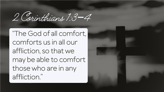 “The God of all comfort…comforts us in all our affliction, so that we may be able to comfort those who are in any affliction.”